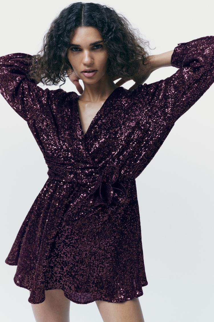 FLORAL SEQUIN JUMPSUIT Purple ZARA United States Very well made.