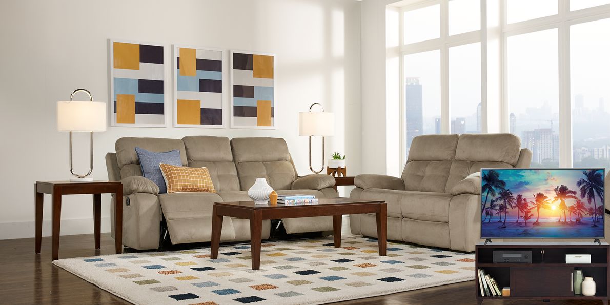 Corinne Stone 6 Pc Living Room with Reclining Sofa Plus 65 in. TV Very well made.