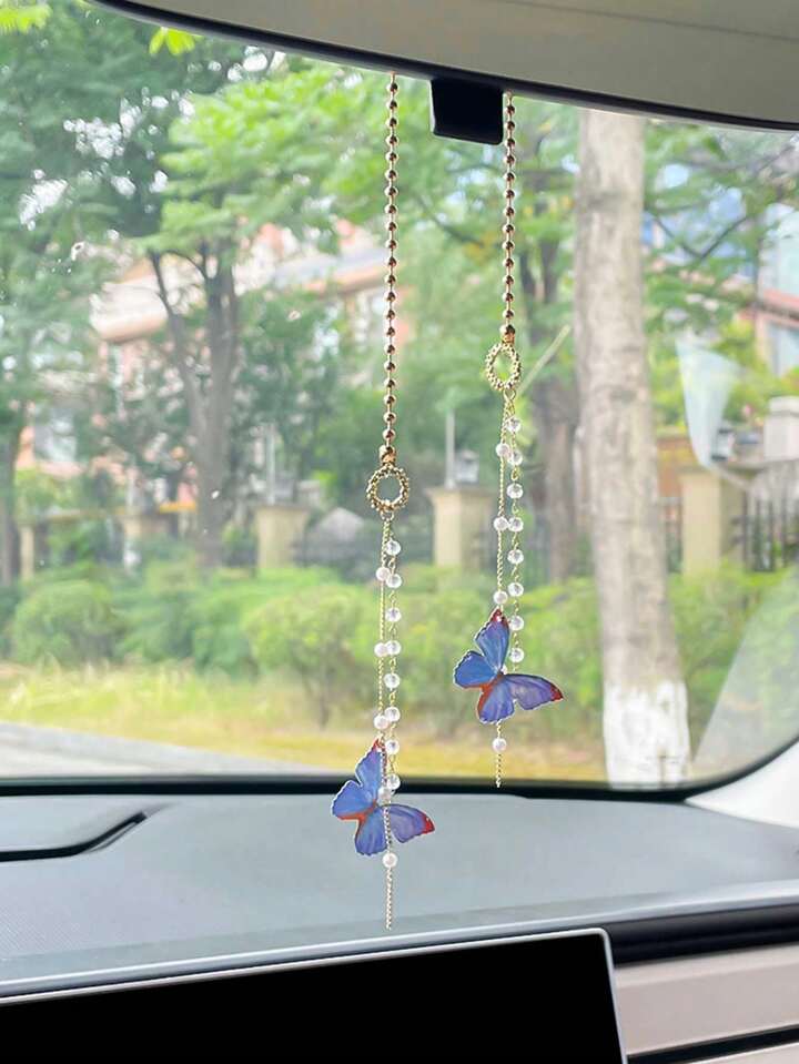 1pc Butterfly Shaped Car Rearview Mirror Hanging Ornament Auto Interior Decoration For Women SHEIN USA Very well made.