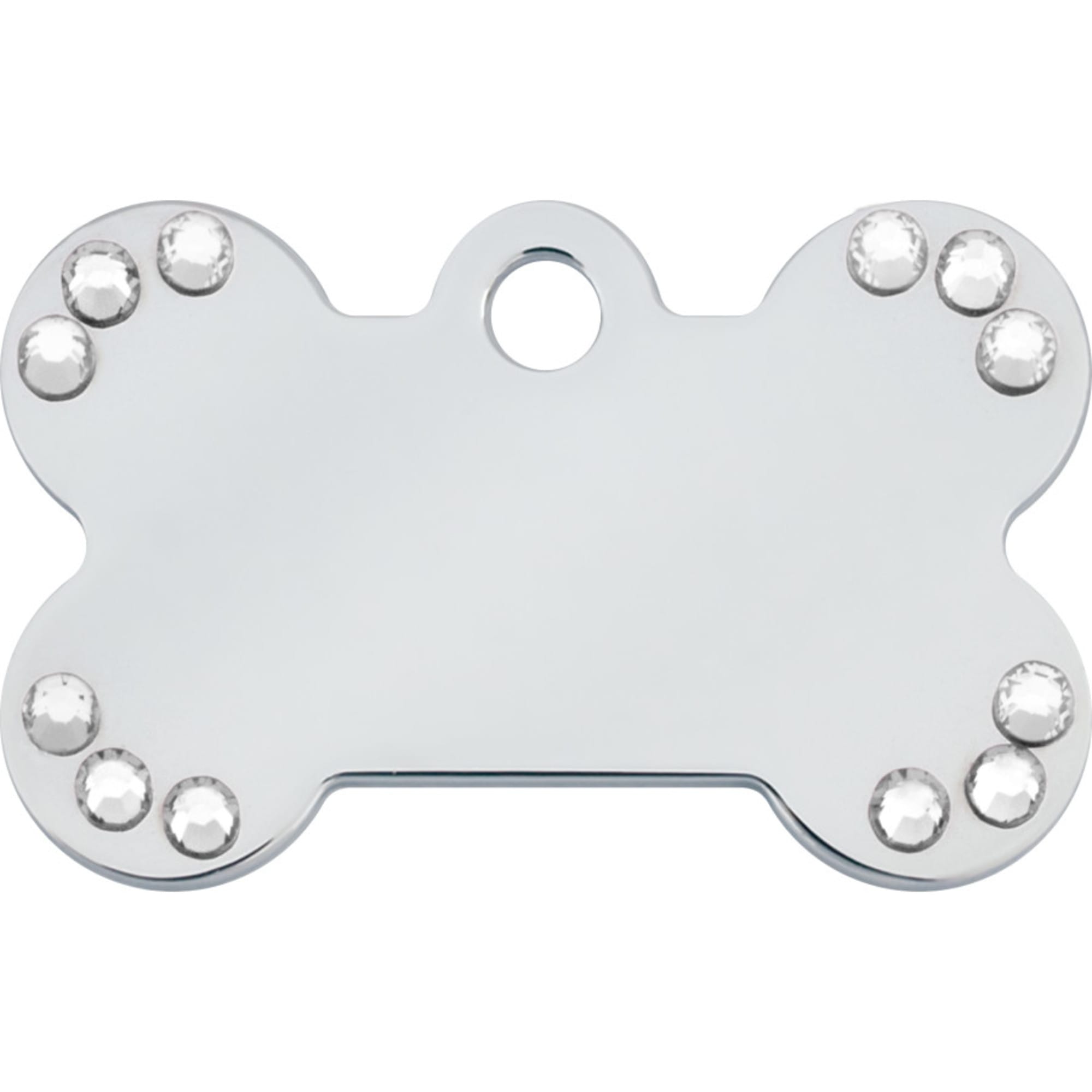 Quick Tag Crystal Bone Personalized Engraved Pet ID Tag Chrome w Clear Crystal Small Very well made.