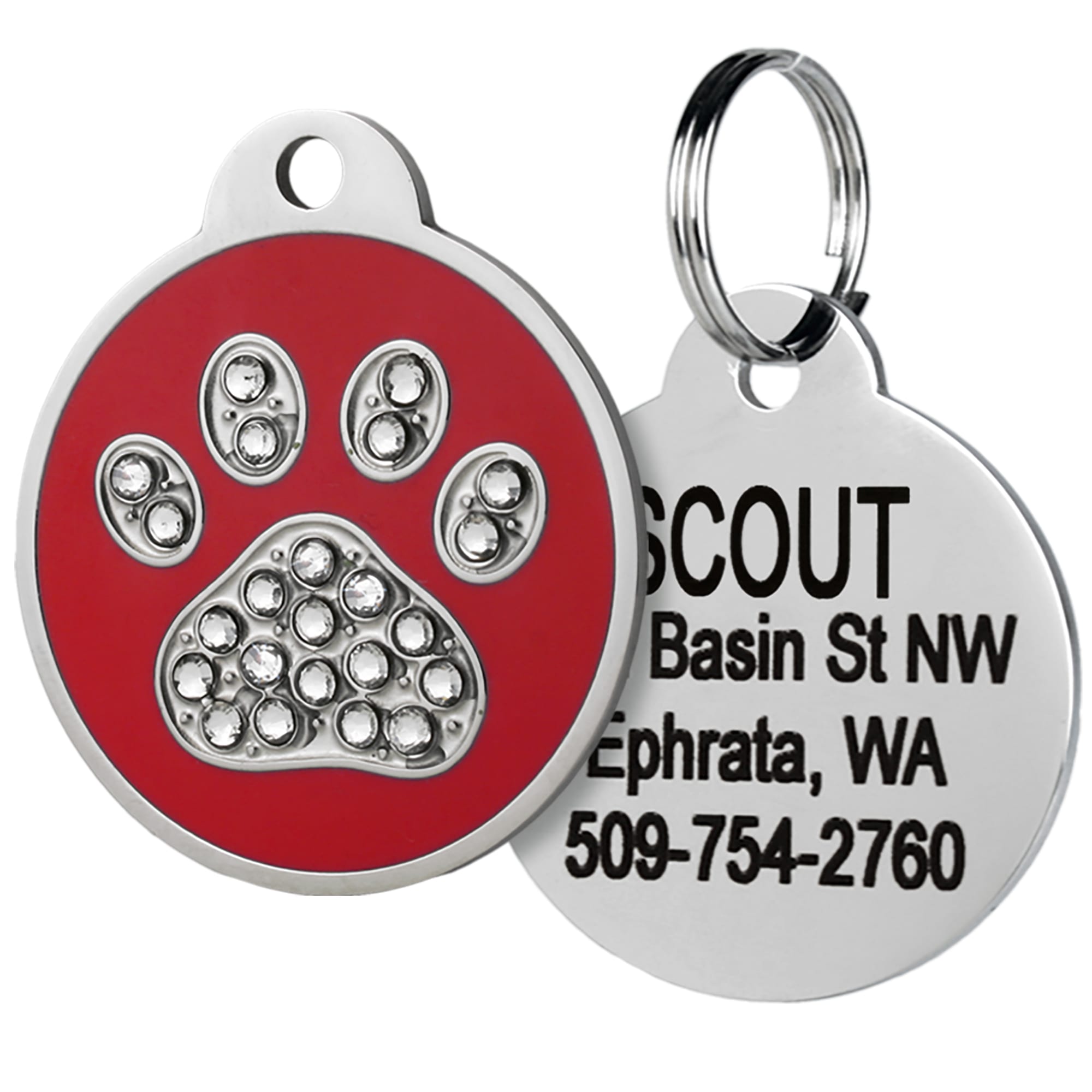 GoTags Paw Print Stainless Steel Pet ID Tags with Swarovski Crystals for Dogs and Cats Red Small Very well made.