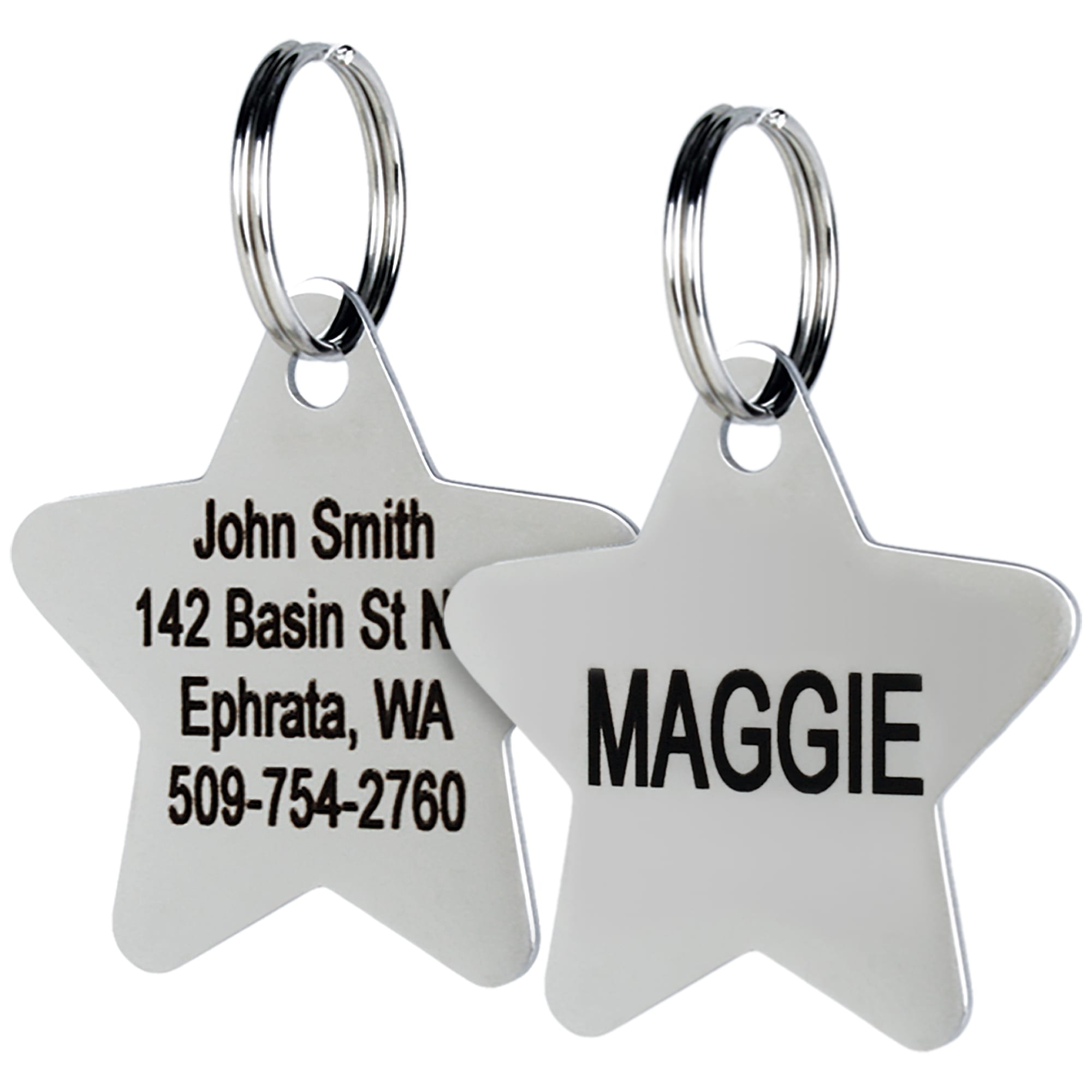 GoTags Personalized Stainless Steel Star Pet ID Tag for Dogs and Cats with Engravement on Both Sides Small Very well made.