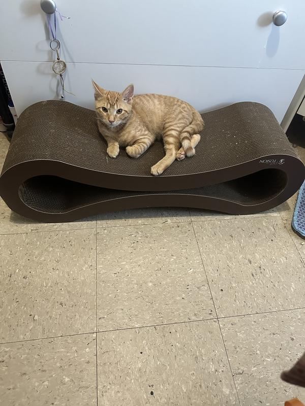 PetFusion Jumbo 2 level Cat Scratcher Lounge Scratch Play Perch and Hide Pet Furniture 39 x 11 x 14 Very well made.