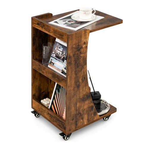 Costway Side Table With Rolling Casters Mobile C shaped End Table With 2 tier Open Storage Shelf 2 Back Storage Compartments Brown grey Target Very well made.