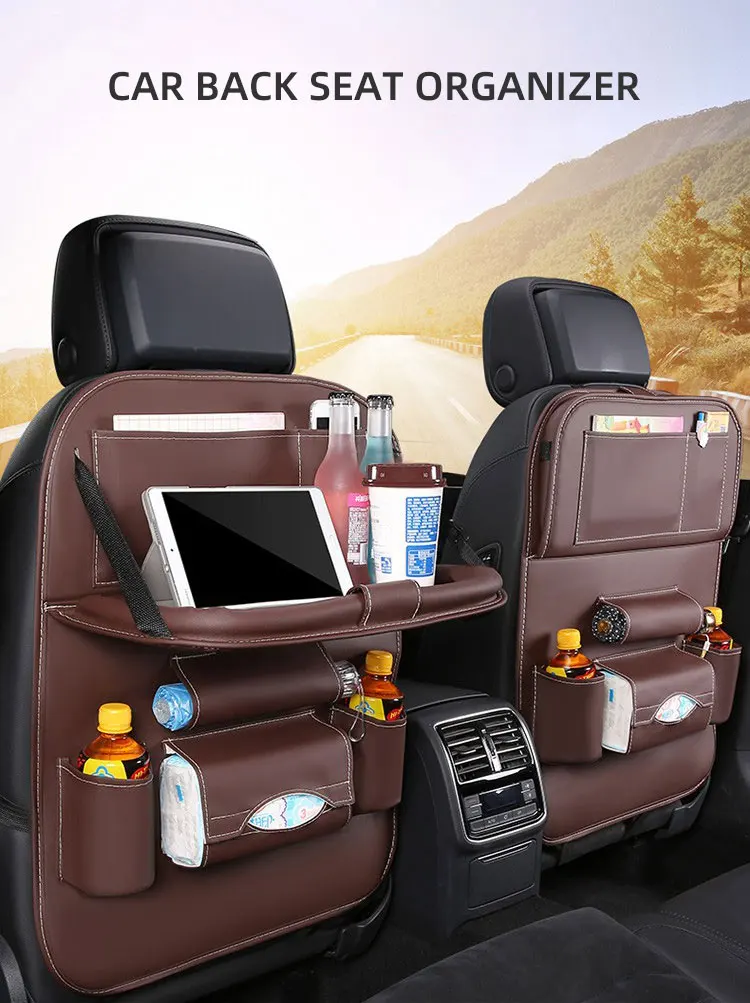 Leather Car Back Seat Organizer Foldable Table Back Seat Car Organizer PVC Car Seat Back Organizer Partition Storage Easy to Clean Very well made.