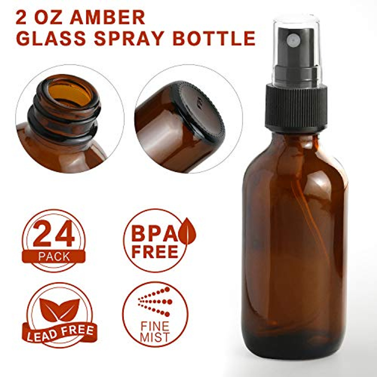Mockins Amber Glass Spray Bottles 24 Pack 2 Oz Misting Bottles with Sprayers Funnel Brush and Labels Very well made.