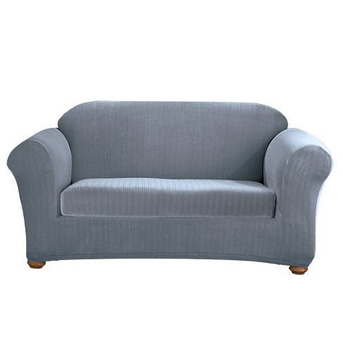2pc Stretch Poly Striped T Cushion Loveseat Slipcovers French Blue Sure Fit Very well made.