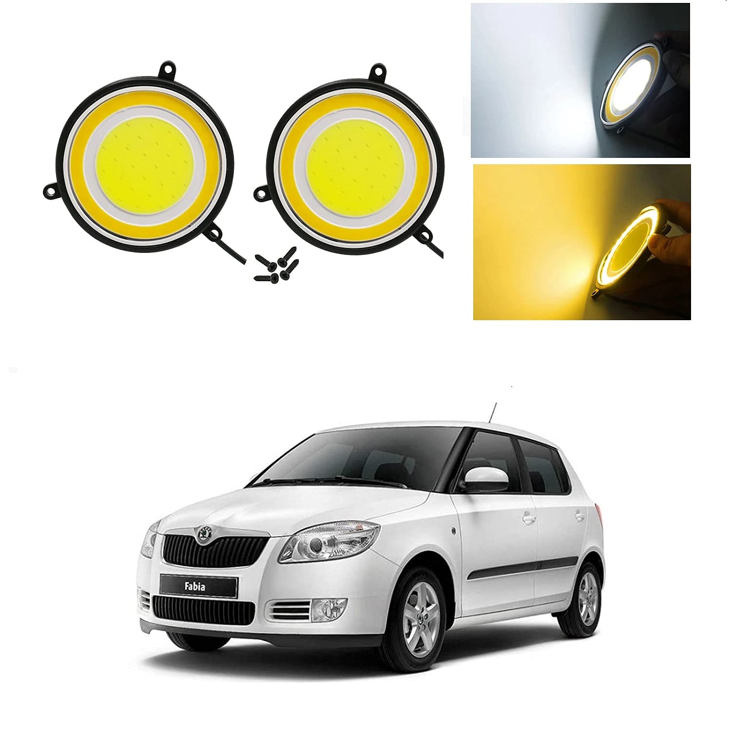 Olmeo Car Led Cob Drl Daytime Running Light Round Fog Lamp Pack of 2 Yellow White for Skoda Fabia Amazon.in Car Motorbike Very well made.