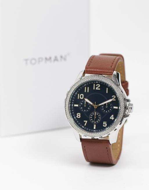 Topman Montre pour homme avec bracelet imitation cuir Marron Very well made.