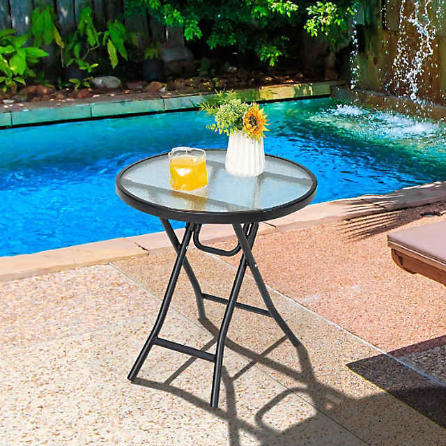 Costway Patio Folding Round Glass Side Table Bistro Coffee Table Very well made.