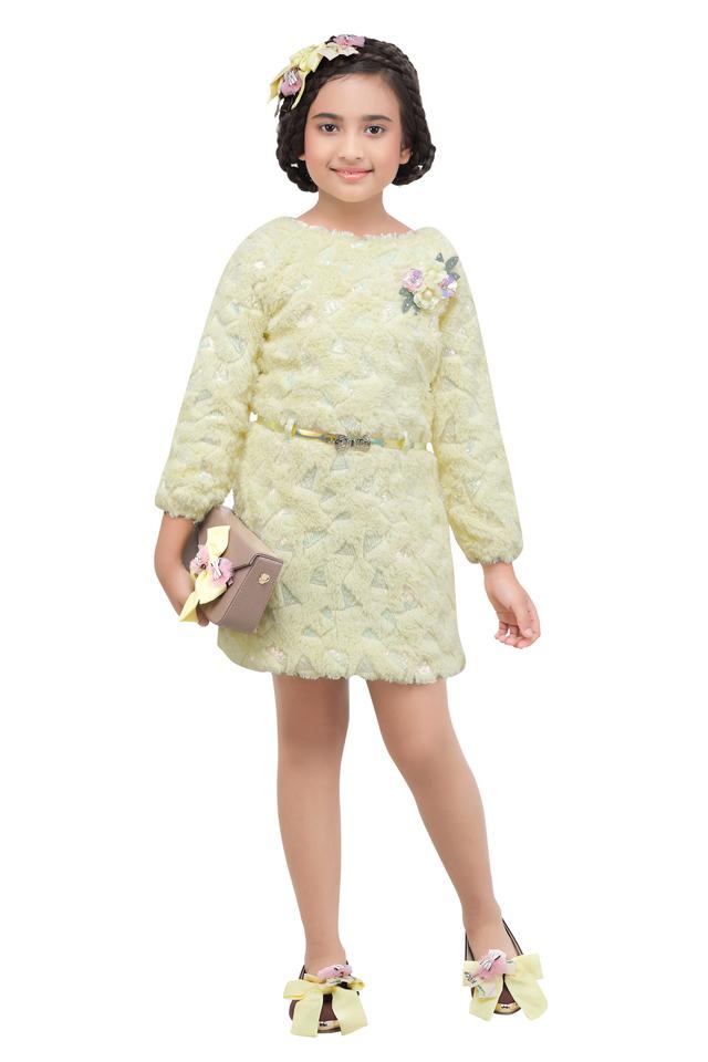 Buy TINY GIRL Lemon Sequinned Boat Neck Girls Party Wear Dress Shoppers Stop Very well made.