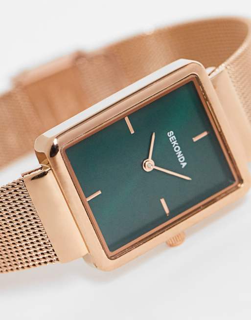 Sekonda Montre carr e pour femme cadran vert Or rose Very well made.