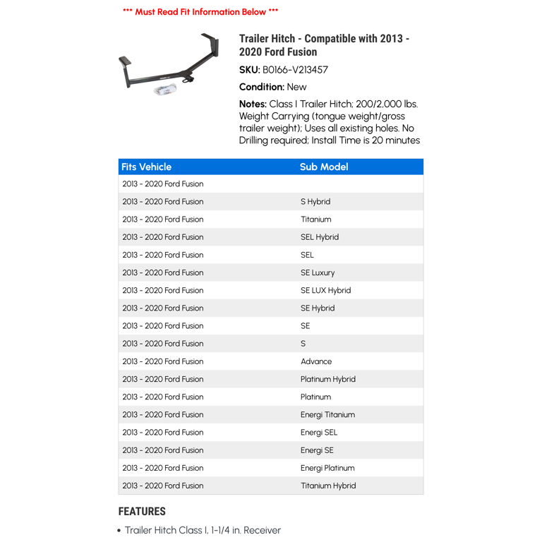 Trailer Hitch Compatible with 2013 2020 Ford Fusion 2014 2015 2016 2017 2018 2019 Walmart Very well made.
