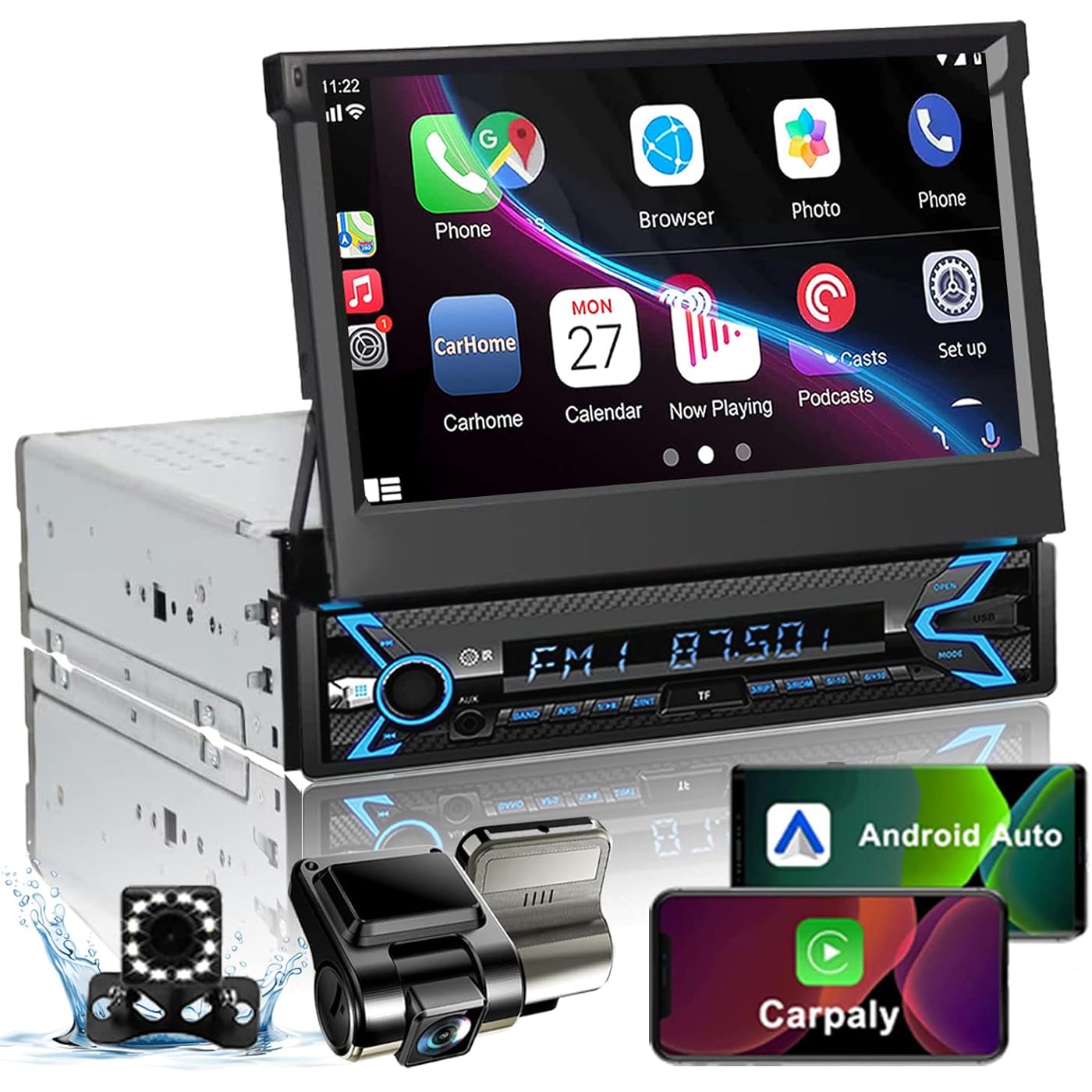 23 mo Finance Naifay Single Din Car Stereo with Dash Cam Backup Camera 7INCH Flip Out Single Din Touchscreen Car Stereo with Apple Carplay Android Auto Car Audio Receivers Bluetooth Very well made.