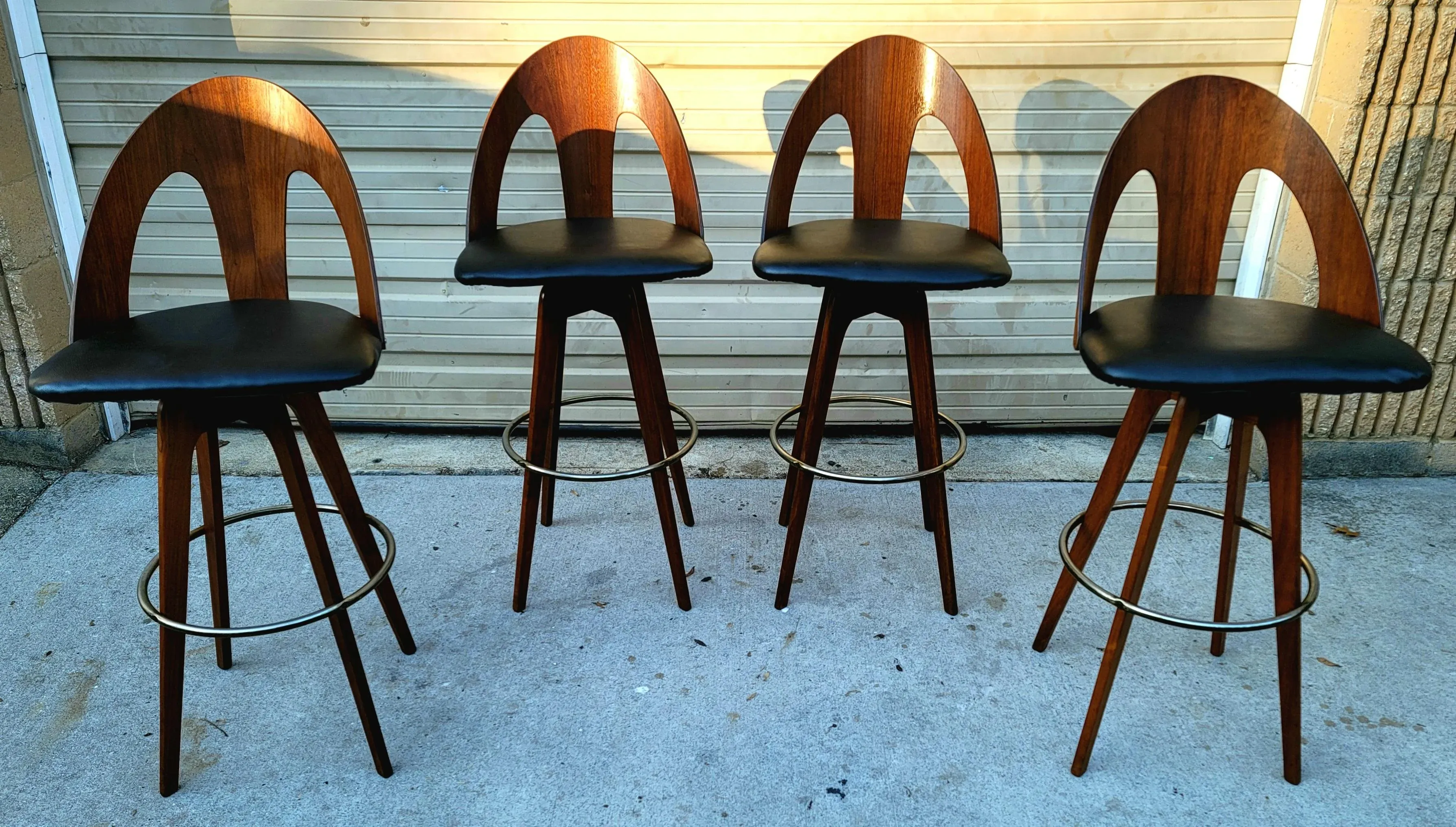 Mid Century Modern Walnut Swivel Bar Stools by Chet Beardsley Set of 4 Very well made.