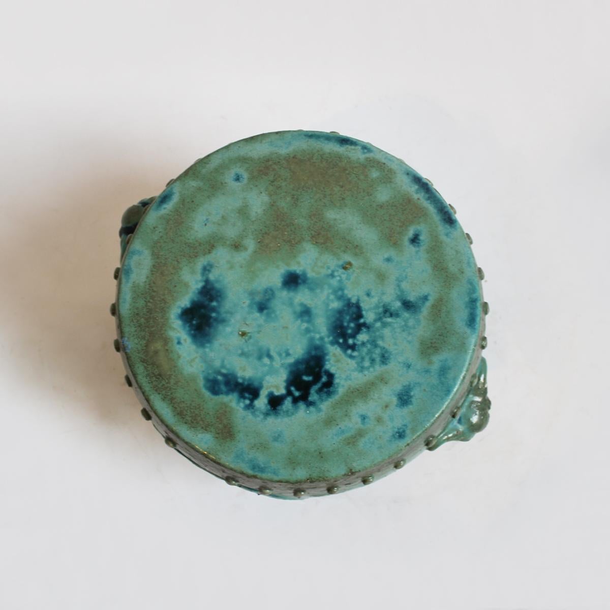 Amazon Ceramic Clay Green Turquoise Glaze Hexagon Motif Very well made.