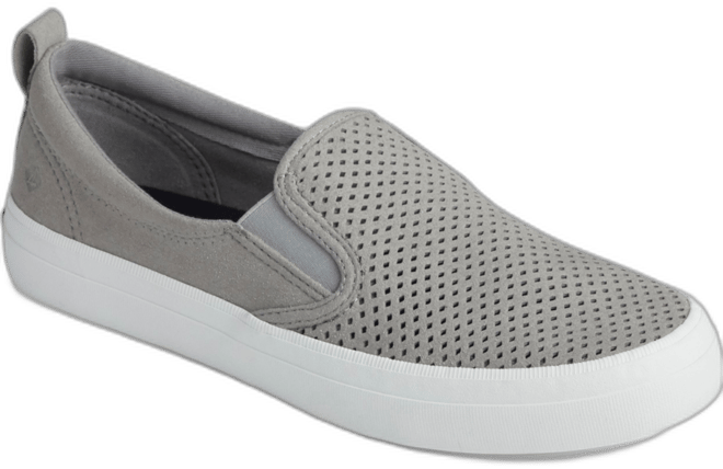 Sperry Top Sider Seaside Perforated Silver Metallic Slip On Sneaker Shoes Very well made.