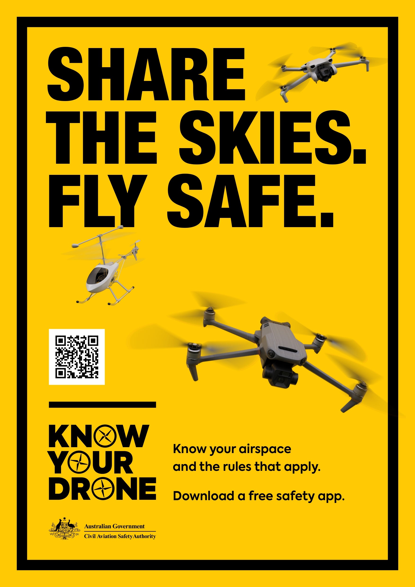 Know Your Drone poster Download a free safety app CASA Online store Very well made.