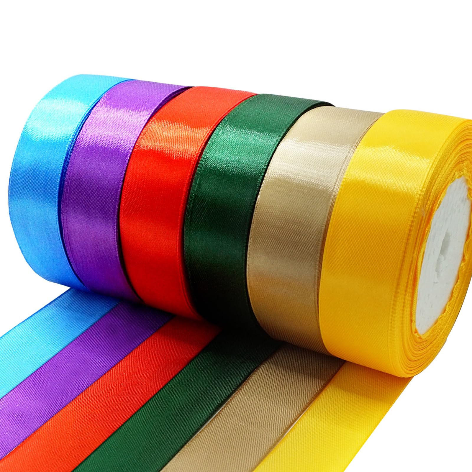 Coloured Satin Ribbon 25mm 6 Rolls 132m 144 Yards Satin Ribbons for Crafting Gift Wrapping Hair Balloons Silk Ribbon Red Green Gold Blue Yellow Purple Ribbon Wide Ribbon Florist Ribbon Cake Ribbon Very well made.