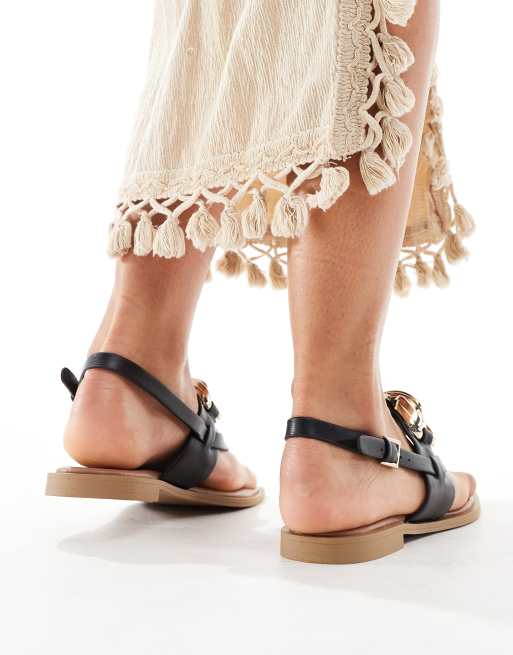 Steve Madden Genie thong sling back flat sandals in black with trim Very well made.