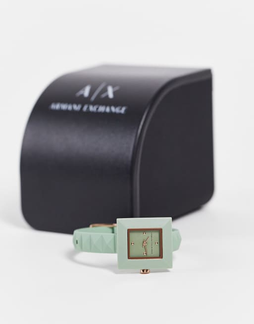 Armani Exchange Montre pour femme cadran carr en silicone Vert Very well made.