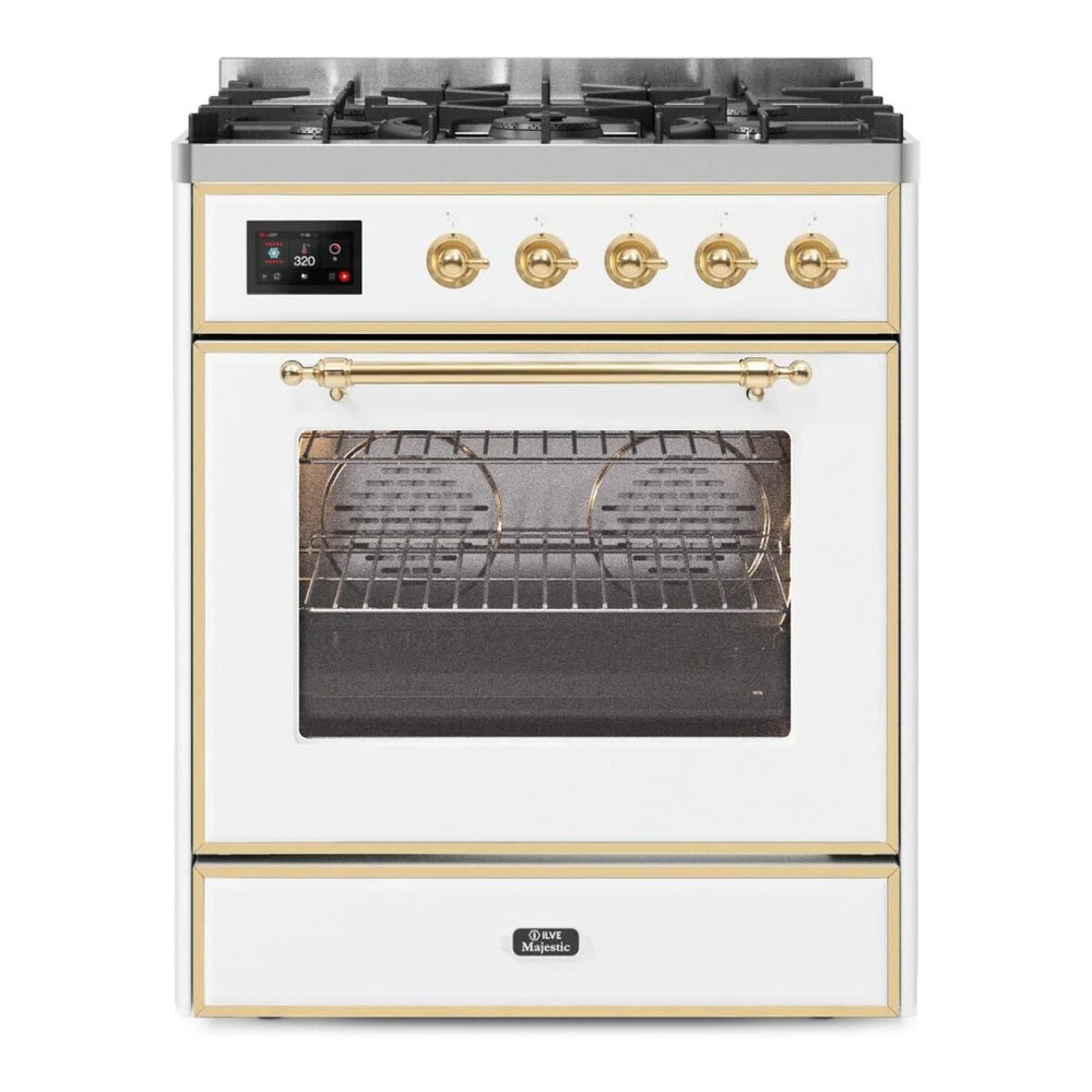 Ilve 30 Majestic II Series Gas Burner and Electric Oven Range with 5 Sealed Burners UM30DNE3 White Natural Brass Very well made.