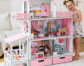 Dollhouse Kit Pink Wooden Dollhouse Large Dollhouse Modern Doll House With Terrace Balcony Dollhouse Christmas Gift for a Child Etsy UK Very well made.