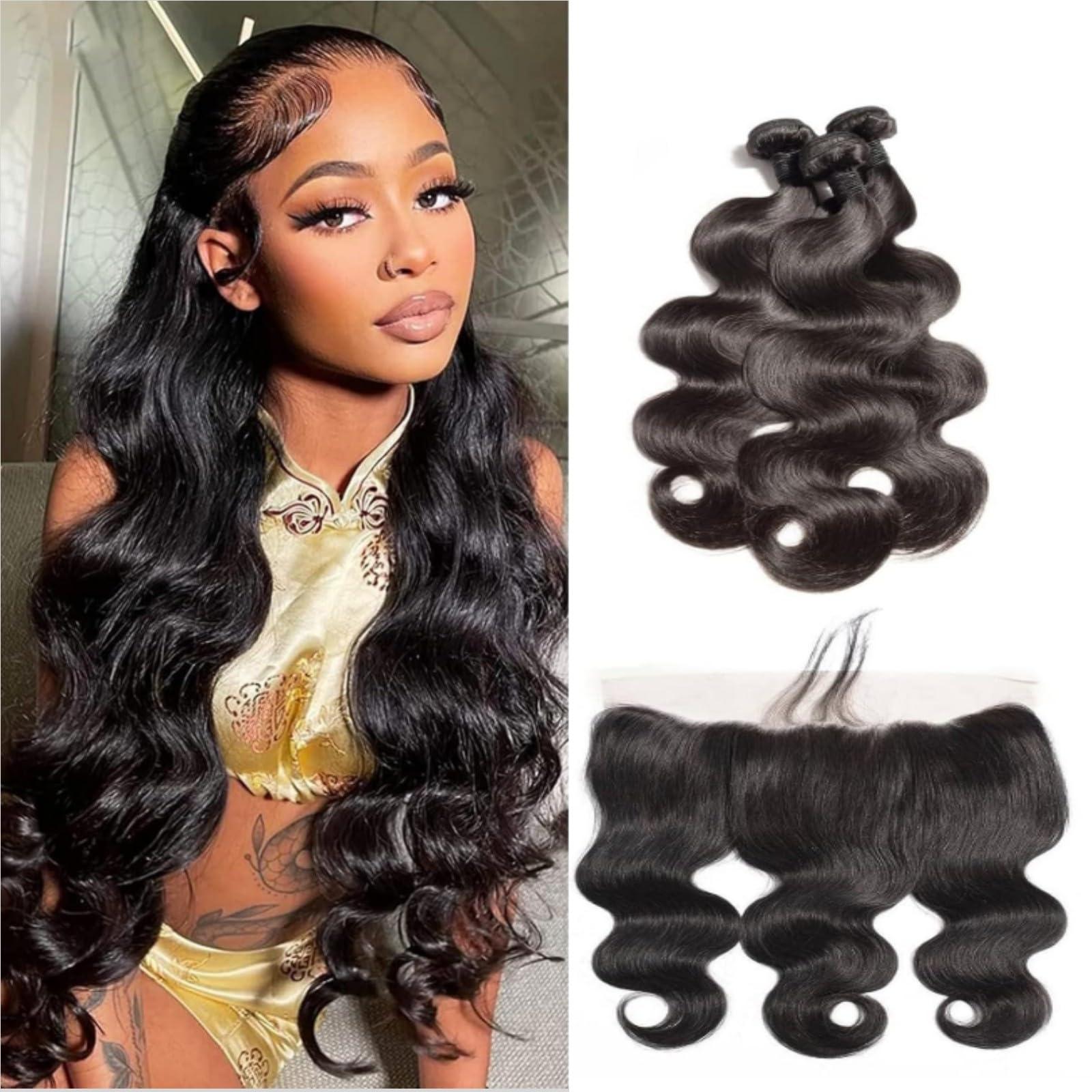 Frontal With Bundles Body Wave Human Hair Bundles With Frontal 14 16 18 12 Inch 13 4 Lace Frontal With Bundles Human Hair 10A Brazilian Virgin Hair Bundles Human Hair Extensions Natural Color Very well made.