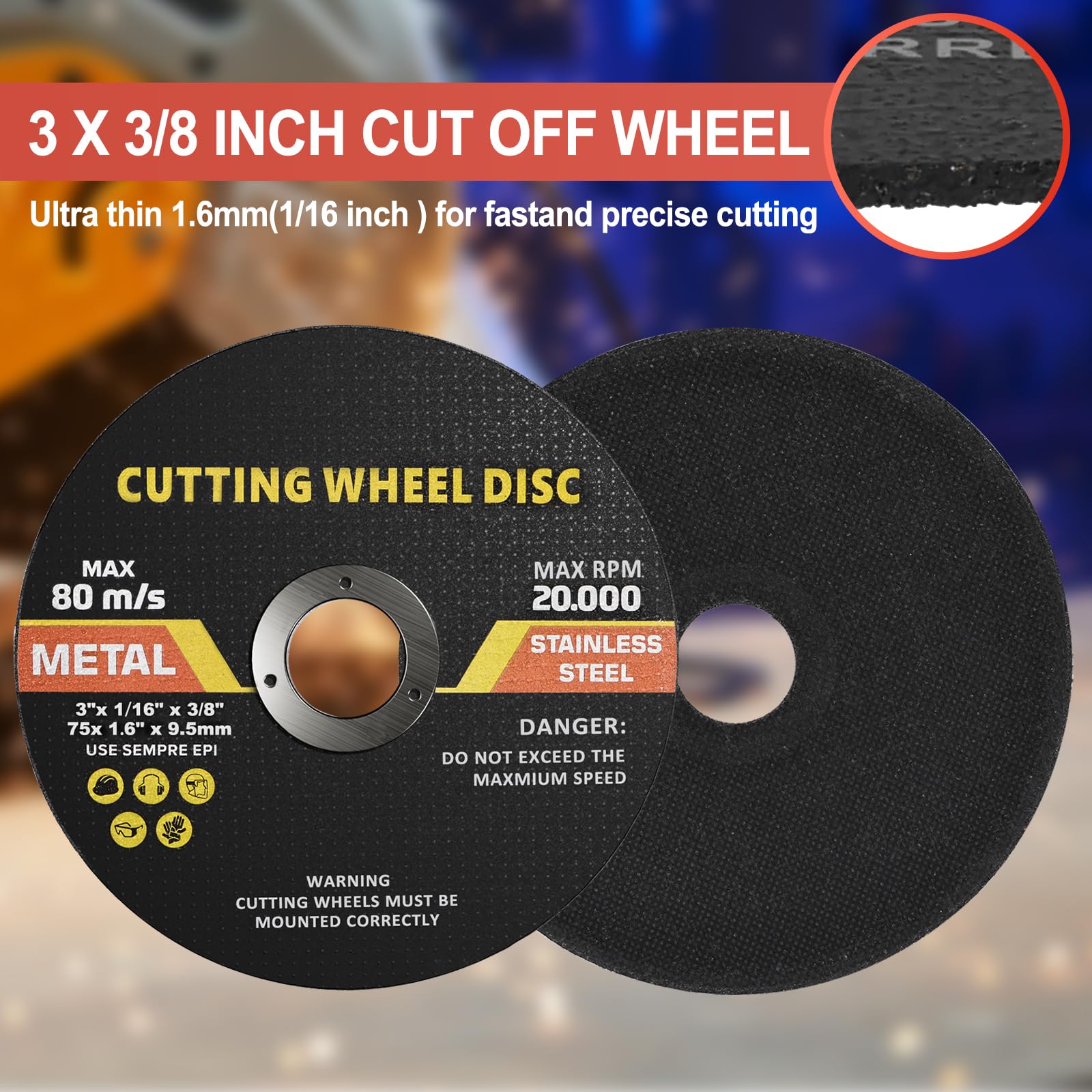 SI FANG 3 inch Cut Off Wheels 10 Pack Metal and Stainless Steel Cutting Discs 75mm x1.6mm x 9.5mm Arbor Cutting Wheel Doubly Reinforced Grinding Very well made.