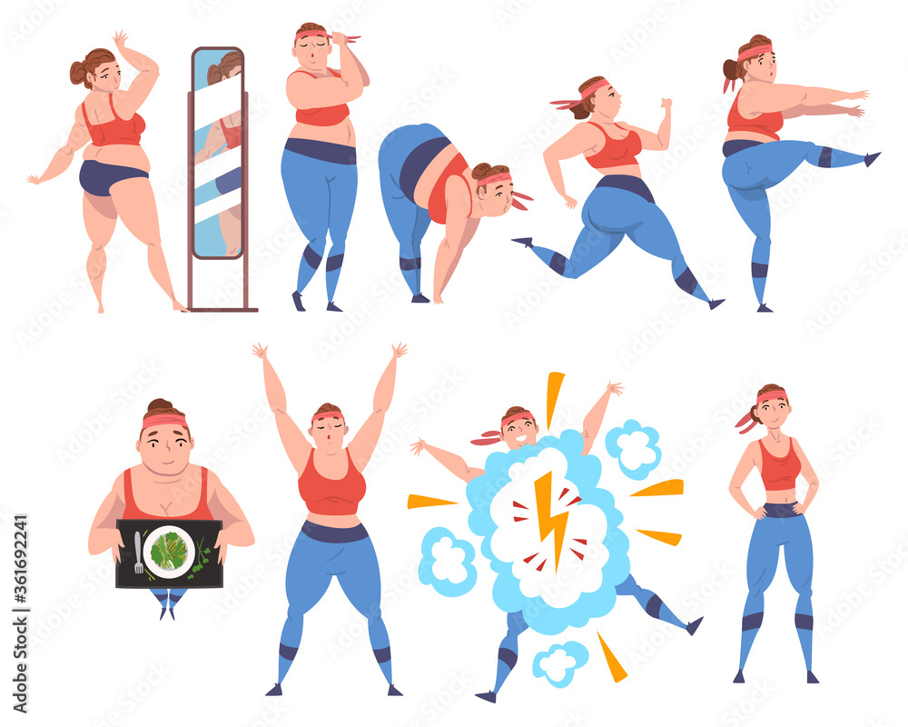 Plump Girl Doing Sport Exercises Set Weight Loss Process Young Very well made.