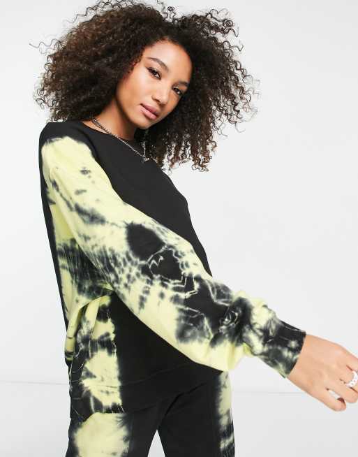 ASOS DESIGN oversized sweat with neon tie dye side detail in black Very well made.