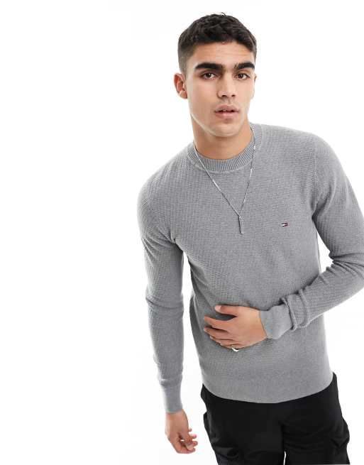 Pull col ras du cou en maille textur e Gris Tommy Hilfiger Very well made.