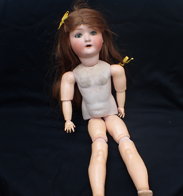 Schoenau and Hoffmeister 1909 bisque headed doll with brown sleeping eyes and open mouth. 60cm h Very well made.