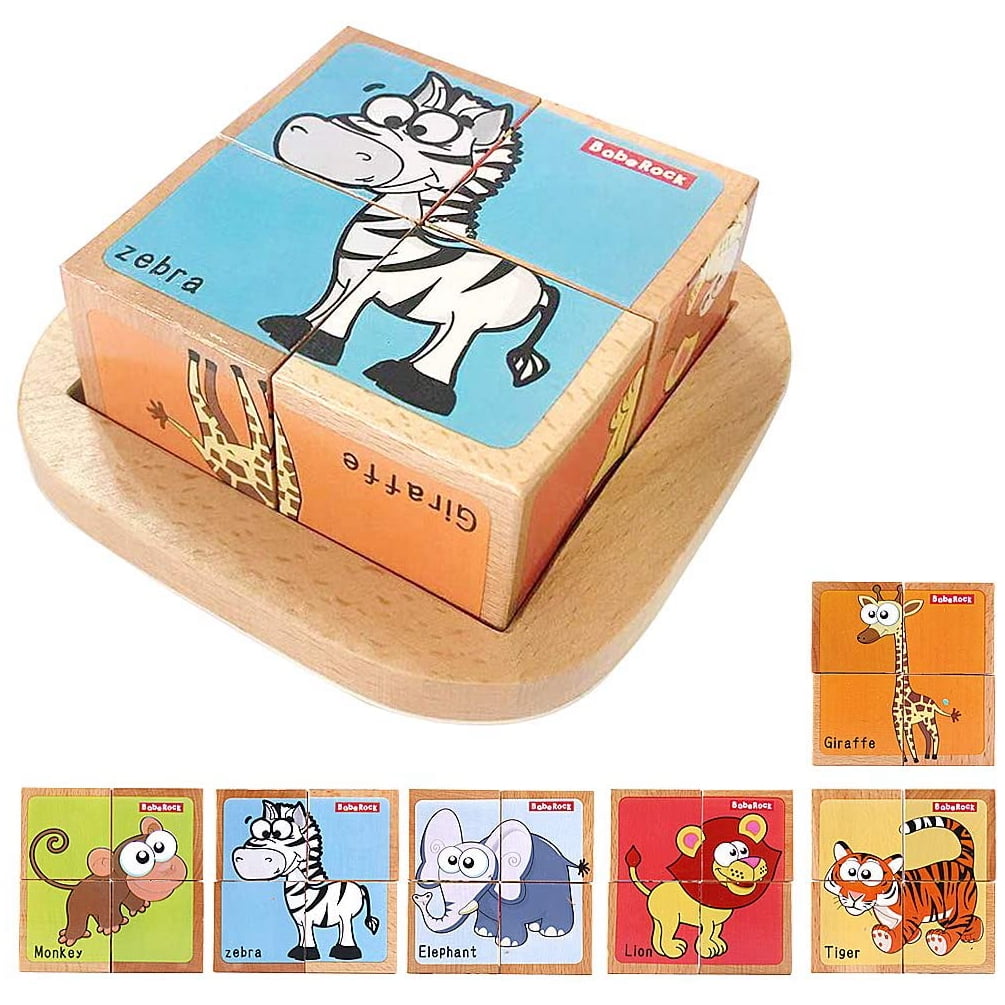 Wooden Jigsaw Puzzles 6 In 1 Animal Puzzle 3D Wooden Cube Block Toys Montessori Educational toys for Kids 3 4 5 Years Old Birthday for Boys and Very well made.