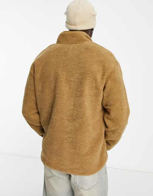 Selected Homme Sweat oversize imitation peau de mouton demi fermeture clair Beige Very well made.