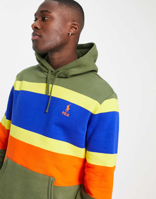 Polo Ralph Lauren logo stripe hoodie in dark green multi Very well made.
