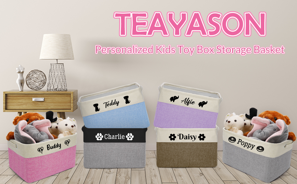 TEAYASON Personalised Kids Toy Box with Name Icon Rectangle Toy Bin with Handles for Boys and Girls Collapsible Storage Basket for Organizing Kids Toys Clothes Books Pink Amazon Home Kitchen Very well made.