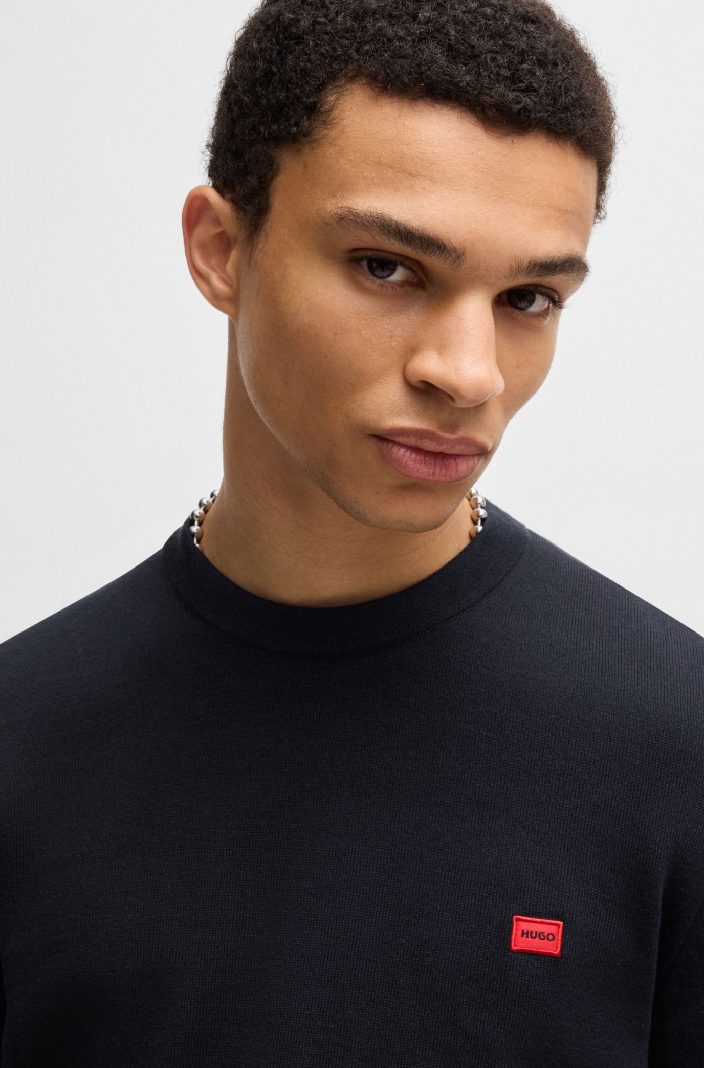 HUGO Knitted cotton sweater with red logo label Very well made.