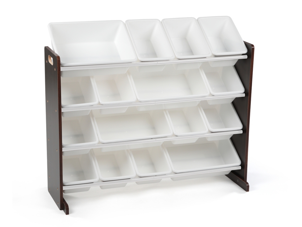 Tot Tutors Dark Walnut Primary Super Sized Kids Toy Storage Organizer w 16 Plastic Bins Discover Collection Very well made.