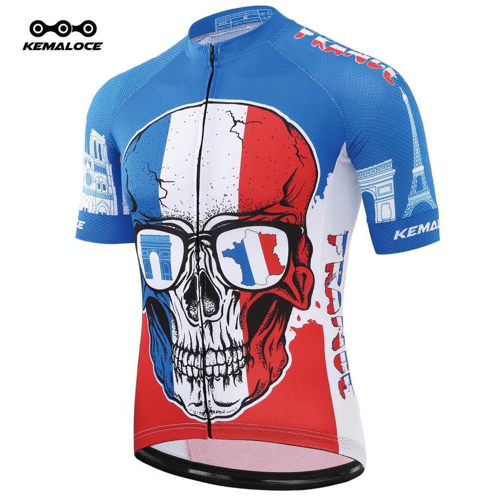 KEMALOCE Blue Skull Cycling Jersey Road Racing Unique Polyester Very well made.