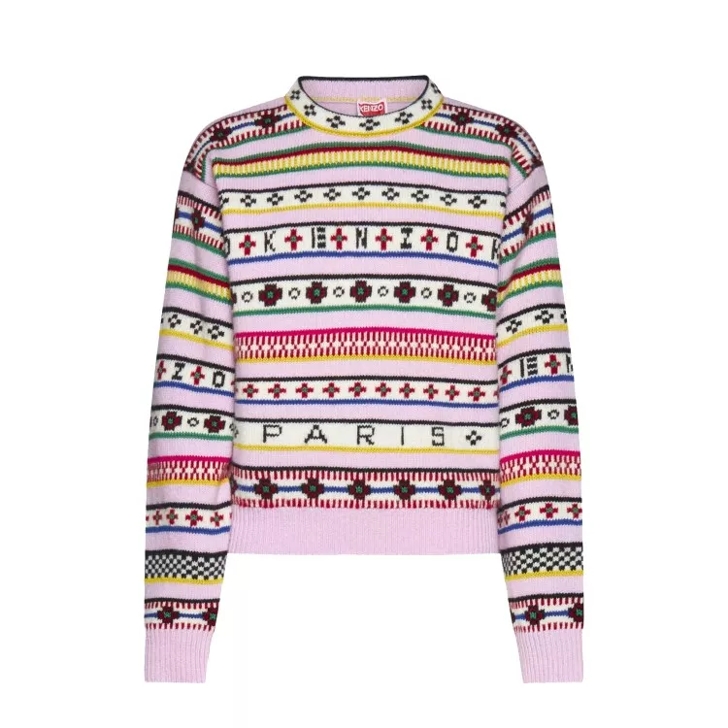 Kenzo Multicolor Wool Sweater Purple Pull en laine Very well made.