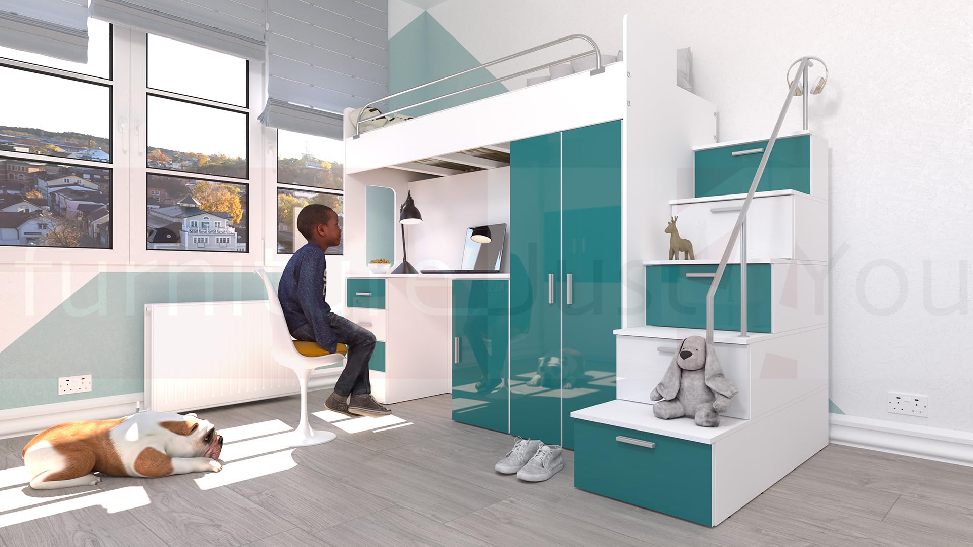 Furniture Just4U Limited Modern Cabin High Sleeper Bed Bunk Bed Loft Bed Storage Mid Sleeper High Bed Wardrobe Desk Stairs Set Foam Mattress Included EDEN 4S Turquoise Small Single Amazon Home Very well made.