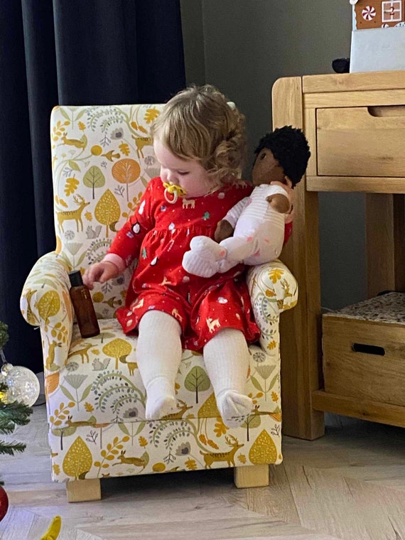 Children s Armchair Footstool in Iliv Rainforest Marine Fabric Kids Jungle Nursery Monkeys Blue Green Etsy UK Very well made.