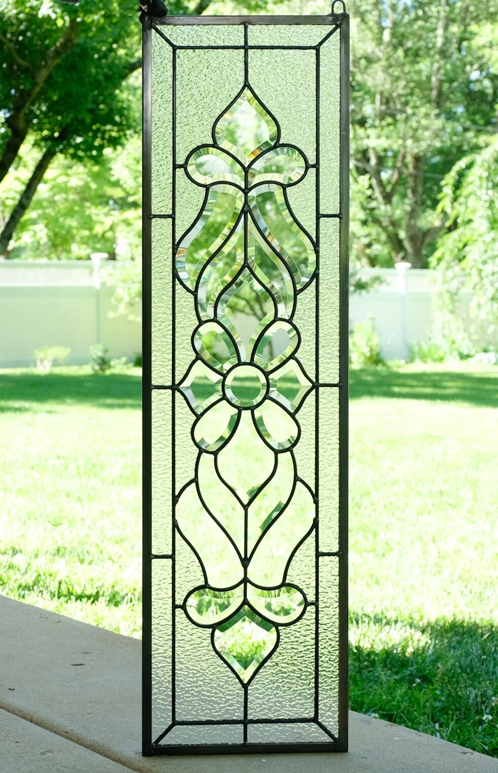 10 x 36 Stunning Handcrafted stained glass Clear Beveled window panel Very well made.