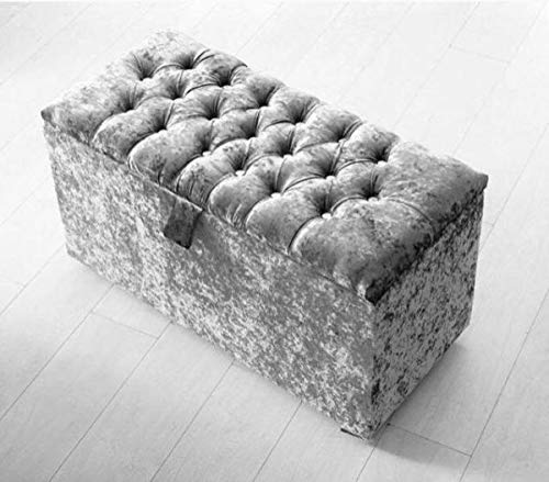 SLEEP ZONE Large Silver Crushed Velvet Matching Buttons Ottoman Storage box Toy Box Storage Box Amazon Home Kitchen Very well made.