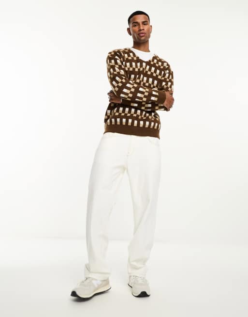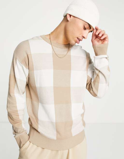 Selected Homme Pull oversize carreaux ton sur ton en laine m lang e Beige Very well made.