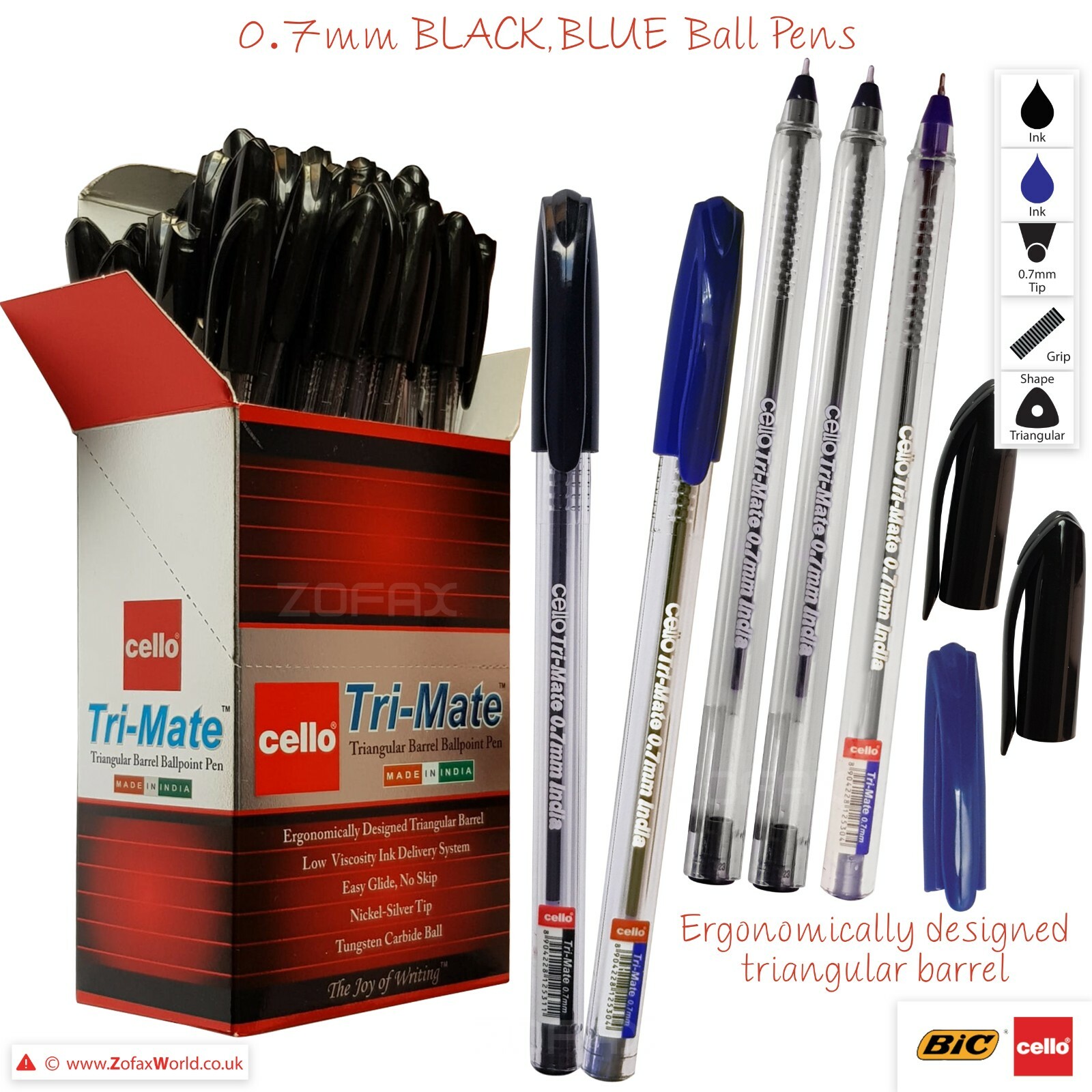 Original BIC CELLO Trio Grip 0.7mm Fine Carbide Point BLACK BLUE RED Ball Pens Very well made.