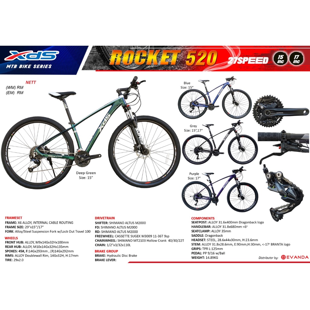 XDS MTB 29 MOUNTAIN BIKE 29 ROCKET 520 27SPEED SHIMANO Very well made.