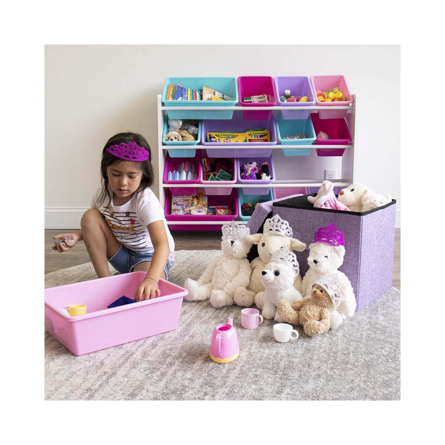 Humble Crew Forever Supersized Toy Storage Organizer with 16 Plastic Storage Bins White Pink Purple Turquoise Walmart Very well made.