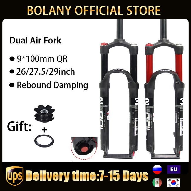 Bolany Bicycle Fork Shoulder Double Air Chamber 26 27.5 29 Supension 100mm Aluminum Alloy MTB Bike Front Fork Cycling Parts Very well made.